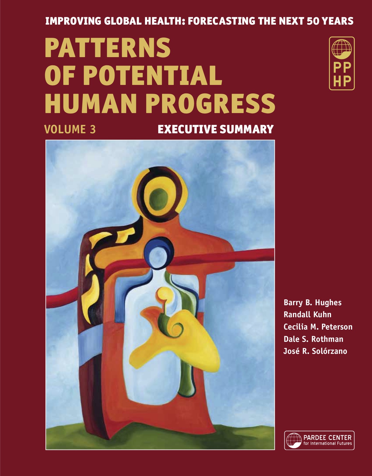 The Pardee Center for International Futures is pleased to announce that the third volume of Patterns of Potential Human Progress – Improving Global Health has been released and is now available for purchase. Using the International Futures (IFs) simulation model to explore prospects for human development, this volume examines how development appears to be unfolding globally and locally, how we would like it to evolve, and how better to assure that we move it in desired directions. Earlier volumes in the series addressed the reduction of global poverty and the advance of global education. Volume three sets out to tell a story of possible futures for the health of peoples across the world. Order your copy online today!